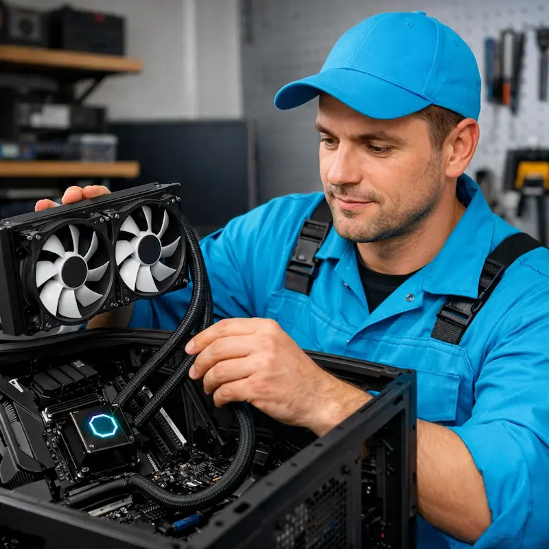 Наш специалист выполнит установку жидкостного охлаждения на компьютер в Волжске с учётом совместимости корпуса, процессора и материнской платы. Перед установкой проводится проверка размеров, креплений и возможностей системы питания.
